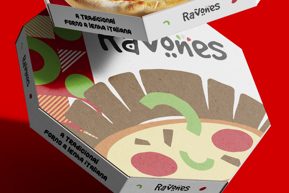 A Ravones é mais do que uma pizzaria, é uma experiência que une tradição e sabor autêntico. Localizada no coração de Joinville, Santa Catarina, esta pizzaria celebra o melhor da cozinha italiana com um toque de modernidade brasileira. O logo da Ravones captura a essência de uma pizza perfeitamente cozida, incorporando elementos divertidos que refletem a alegria e a hospitalidade da marca. O desenho simplificado de uma fatia de pizza, combinado com uma paleta de cores terrosas e vibrantes, convida os clientes a um ambiente acolhedor e descontraído. A identidade visual trás padrões geométricos e orgânicos que remetem aos ingredientes naturais e à massa artesanal. Este projeto se destaca como um exemplo de como uma marca pode ser calorosa, convidativa e cheia de personalidade, conectando-se com a comunidade local e celebrando a tradição culinária italiana com um coração brasileiro.